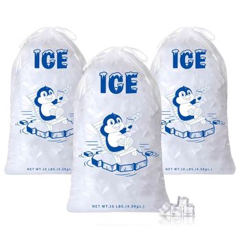 Bolsa de hielo de plástico PE transparente grande para alimentos, racimos de cuerda de extracción, embalaje de hielo grueso