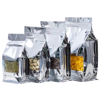 Bolsa transparente de fondo plano para embalaje de nueces con cierre de cremallera, bolsa transparente de plástico con apertura de ventana aluminizada y sello octogonal